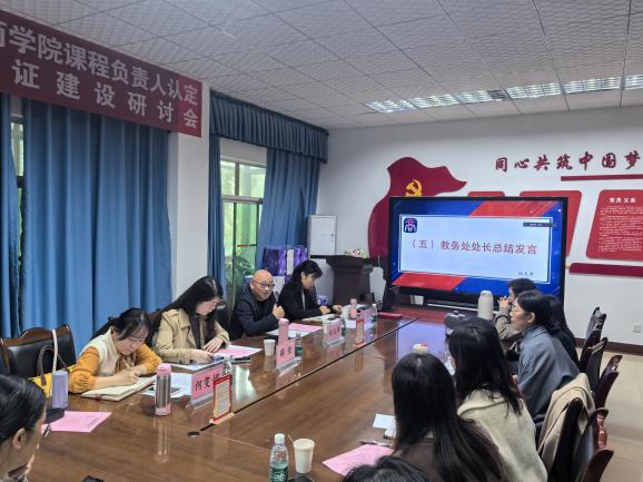 为推动“岗课赛证融通”综合育人与“三教”改革,文化商学院于11月08日下午在温故楼三楼会议室组织召开2024年课程负责人认定暨岗课赛证建设研讨会。会议邀请成都职业技术学院副教授薛佳、教务处处长向天华、通识教育部主任傅丽、通识教育部大学语文教研室主任何雯娟作为指导专家莅临现场,副院长曾兴、第二批次课程负责人、整周实训任课教师参加会议,会议由曾兴主持。