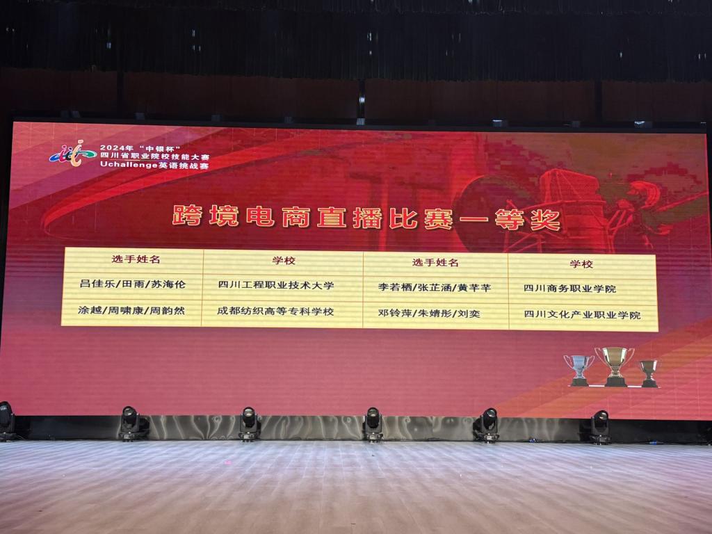 11月30日,由四川省教育厅主办、四川工程职业技术大学承办的2024年“中银杯”四川省职业院校技能大赛Uchallenge英语挑战赛圆满落幕。文化商学院师生团队以总排名第四的优异成绩荣获跨境电商直播赛项省级一等奖。