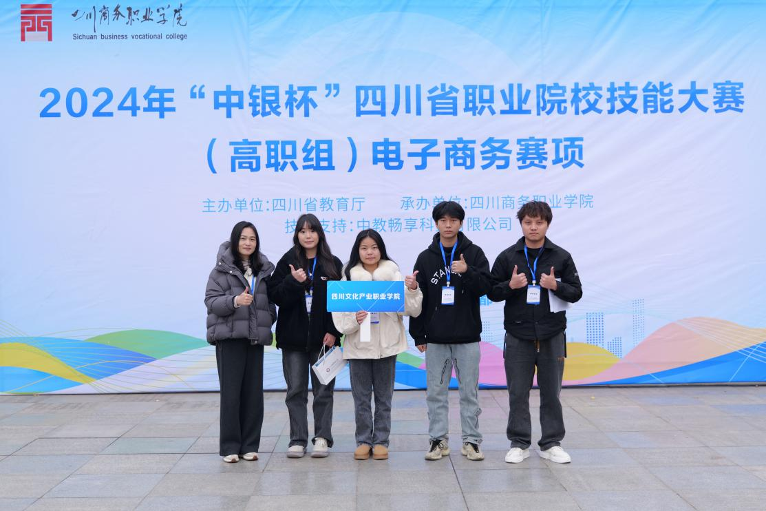 12月19-20日,由四川省教育厅主办、四川商务职业学院承办的2024年“中银杯”四川省职业院校技能大赛电子商务赛项(高职组)圆满落幕。我院教师周陈妃、杨蕊指导的移动商务、市场营销专业李政、刘思怡、张娅、陈延军组成的学生团队,以全省第1名的赛绩勇夺一等奖1项,并顺利晋级2025年世界职业院校技能大赛。