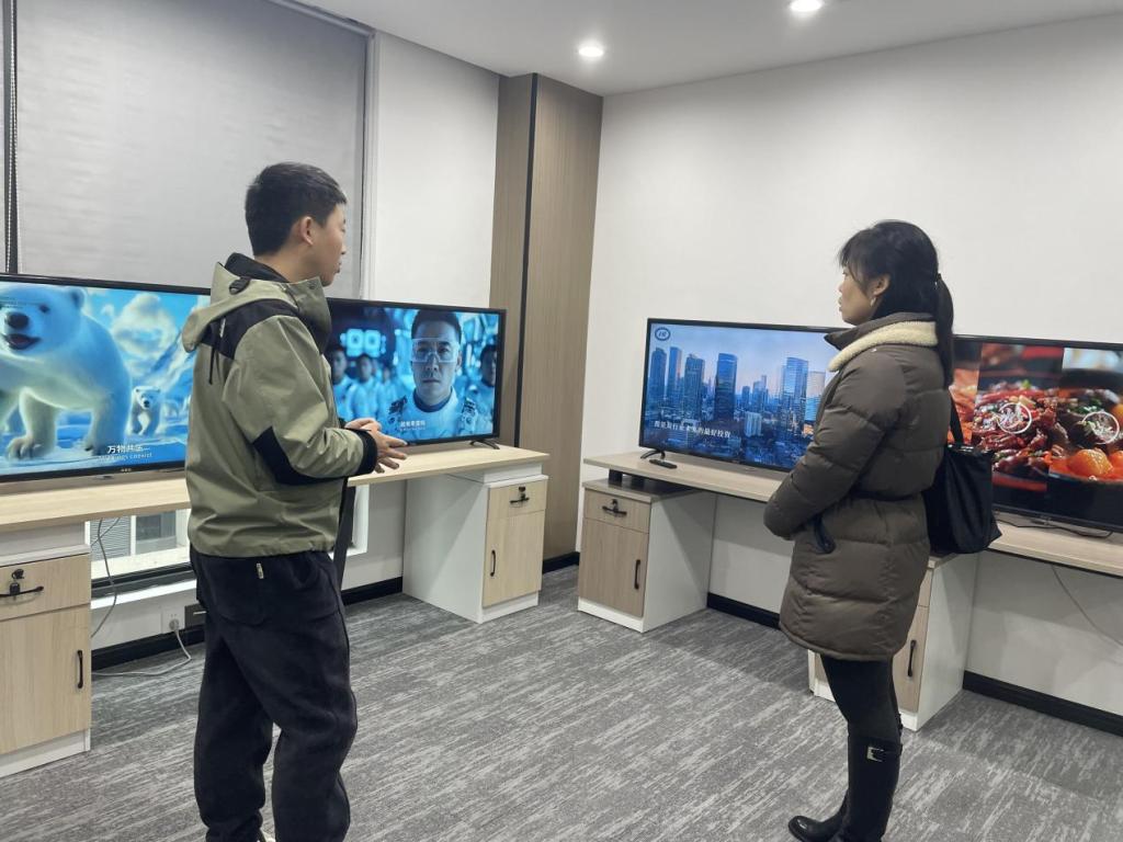 调研团队首先参观了公司在数字科技和文化产业融合发展方面最新的技术和产品,了解了公司在软件开发、技术服务、人工智能应用等方面开展的多元化业务。总经理马明宇详细介绍了公司的发展历程、业务范围、技术创新和市场前景,曾兴介绍了学院的专业设置情况,表示校企双方应该共同拥抱AI时代的到来,积极探索数字商贸领域的深度合作,通过资源共享、优势互补,实现人才共育,推动科技成果转化为新质生产力。双方还就项目植入、产教融合、师资培养、岗位就业等方面达成初步合作意向。