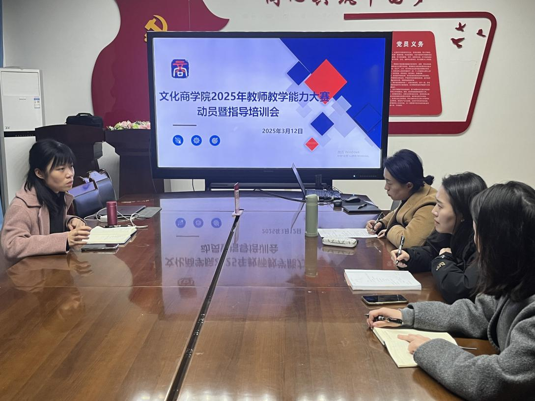 为积极备战教师教学能力大赛,促进教育教学质量的全面提高,文化商学院于2025年3月12日下午在温故楼三楼会议室组织召开教师教学能力大赛动员培训会,文化商学院副院长曾兴、两支参赛队伍教师及教务人员参加会议,邀请教育部职业院校教学能力比赛评审专家、顺德职业技术学院教授廖荣盛做专场指导。