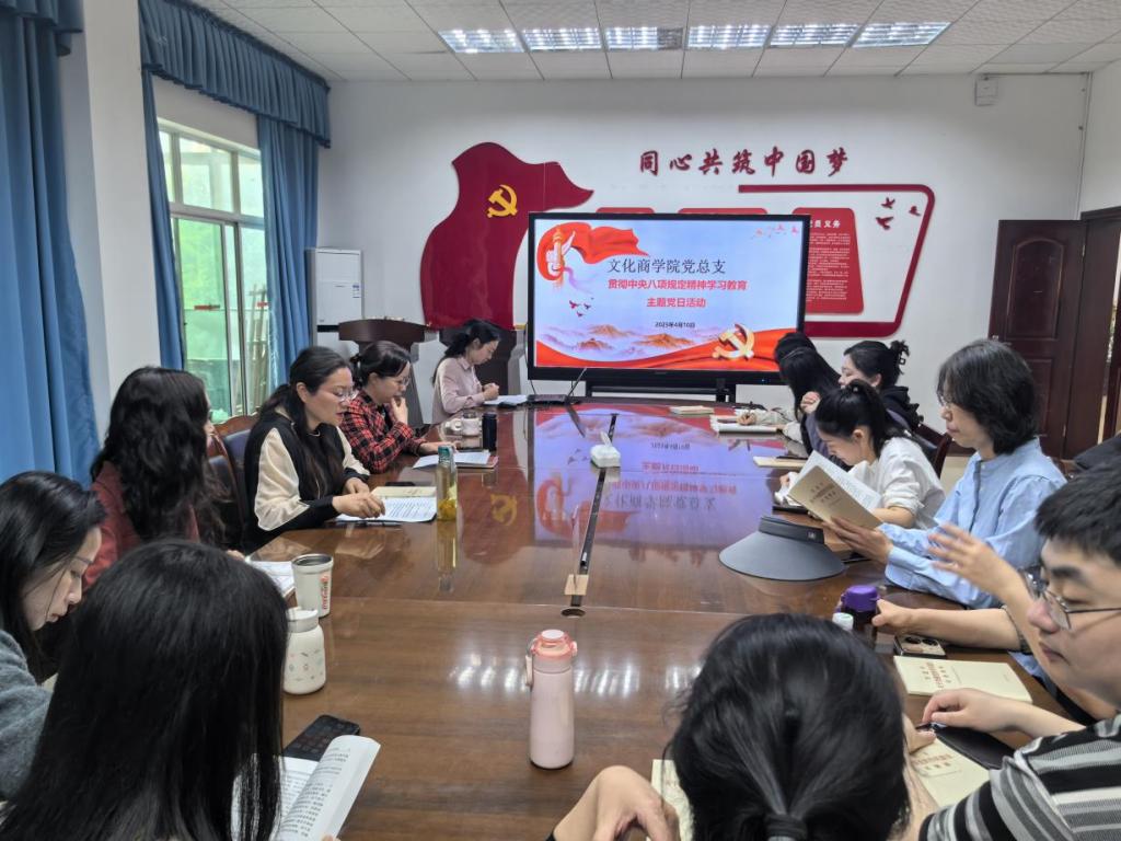 2025年4月10日,文化商学院两支部在温故楼三楼会议室举行深入贯彻中央八项规定精神学习教育,学院全体党员参会。