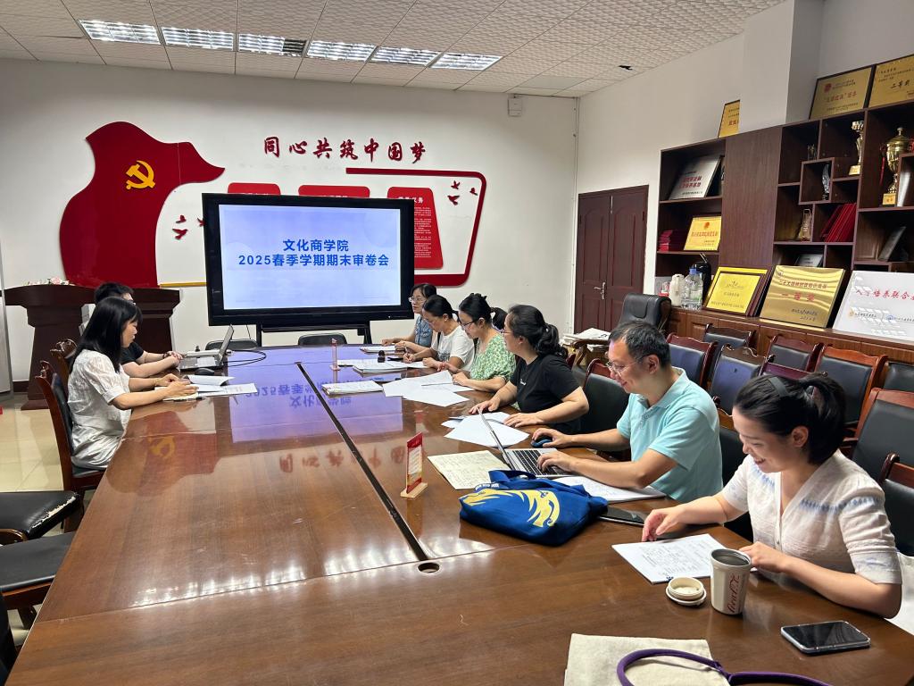 6月9日,为提高期末试卷的命题质量,确保课程教学评估的公正性和有效性,文化商学院组织开展全院的试卷命题质量审核工作。旨在进一步强化教学管理,守好安全底线,高度重视人才培养的每一个环节。文化商学院院长曾兴、各专业主任及课程负责人参加会议。