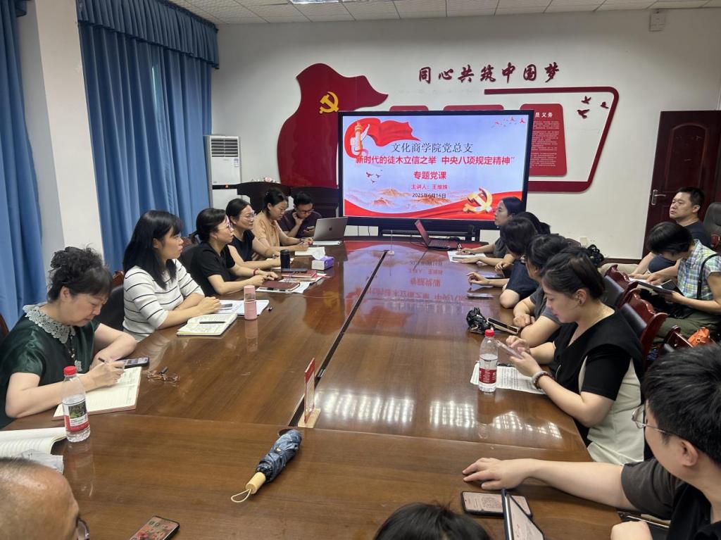 为深入贯彻中央八项规定精神学习教育,推动作风建设走深走实,6月16日文化商学院党总支书记王维姝以《新时代的徙木立信之举中央八项规定精神》为题讲授党课。总支全体党员参加。