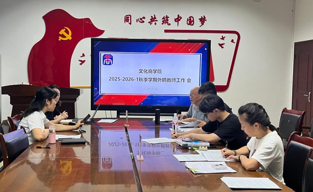 为加强外聘教师队伍建设,确保2025年秋季学期教学工作平稳有序开展,文化商学院于9月10日中午在温故楼三楼会议室组织召开秋季学期外聘教师工作会。学院院长曾兴出席会议,8名外聘教师及教务科教辅人员参加会议。