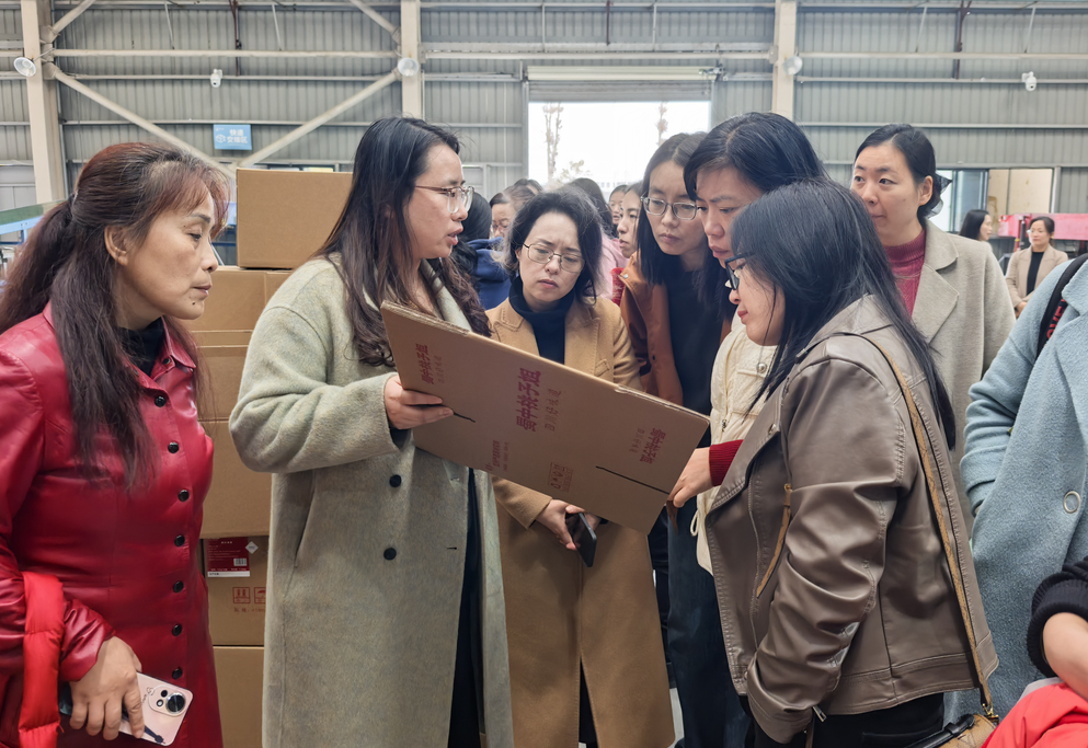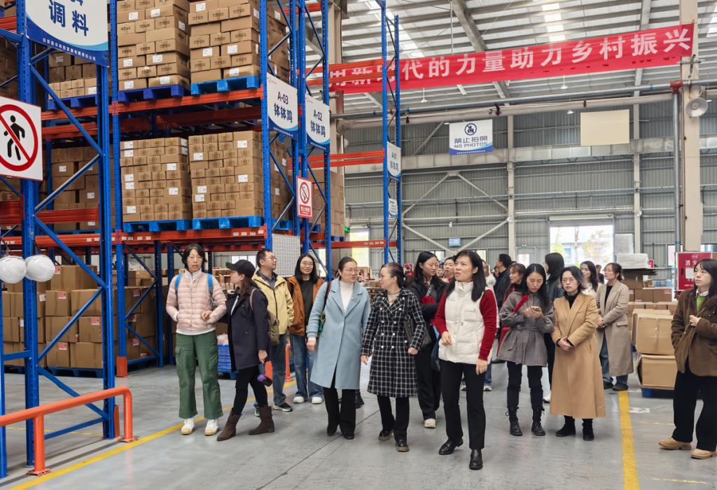 企业调研中,老师们在企业总助理谷星的带领下,参观6000平方米智能仓储与生产车间及品牌运营中心,了解“蜀中桃子姐”IP的创始历程和“内容电商+直播销售+标准化供应链”发展模式。校企双方还就产教融合、技能竞赛、实习就业等方面开展深入交流,达成了初步合作意向。