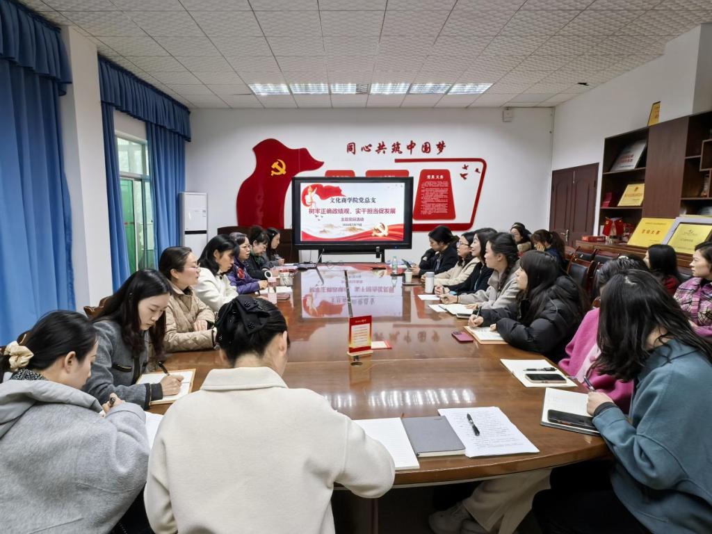 2026年3月19日,文化商学院党总支在温故楼310会议室开展“树牢正确政绩观实干担当促发展”主题党日活动,全体党员参加,活动由党总支副书记吴燕霞主持。