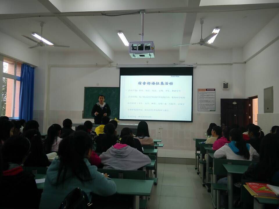 为提高同学们的环境保护意识,搞好宿舍环境建设,10月16日,我院宿舍管理委员会召开宿舍标语征集活动动员大会,院学生科负责人、分团委书记毛浩杰、宿舍管理委员会全体成员、2013级和2014级寝室室长参加动员会。宿舍管理委员会纪检安全部部长胡晓主持会议。