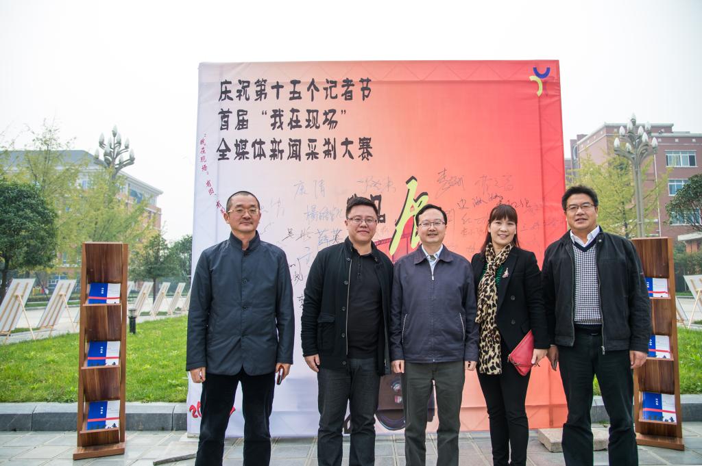 11月6日上午,文传学院庆祝第十五个记者节首届“我在现场”全媒体新闻采制大赛作品展在学校中心广场举行。校领导罗晓东、李太斌、曹启富前来观展,教务处处长吴斌、学工部部长吴兴斌出席活动开幕式。