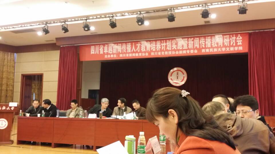 11月18日,四川省卓越新闻传播人才教育培养计划实施暨新闻传播教育研讨会在西南民族大学召开。会议由四川省新闻教育协会、四川省老教授协会新闻专委会、西南民族大学文新学院联合举办,全省卓越新闻传播人才教育培养计划项目院校、其他开办新闻传播类专业院校和部分媒体单位参加了会议。四川新闻教育界泰斗、四川省新闻教育协会会长、四川大学邱沛篁教授出席会议,四川省委宣传部新闻处干部刘洋到会发言。我院新闻专业彭德惠、母华二位老师参加了会议。