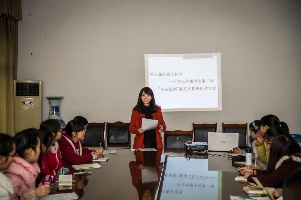 为响应学校第五届公寓文化节活动,12月15日,我院召开了第二届“专业定制”寝室文化秀启动大会。会议由学院分团委副书记孙艺钊主持,宿管委成员及各班生活委员出席大会。