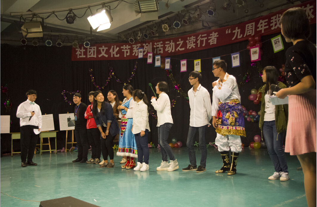 晚会节目丰富多彩,歌曲、舞蹈、情景剧、朗诵一应俱全,民族联彝社团的海来勇古以一首热情奔放的《东山美人》完美地展现了民族特色,将现场气氛推向高潮。读行者社团社长谢菲通过PPT向大家展示了读行者这九周年的历程。最终,舞蹈《金马靴》斩获最佳才艺奖、民谣歌曲《董小姐》获得最佳内涵奖、歌曲《东山美人》获得最高人气奖。