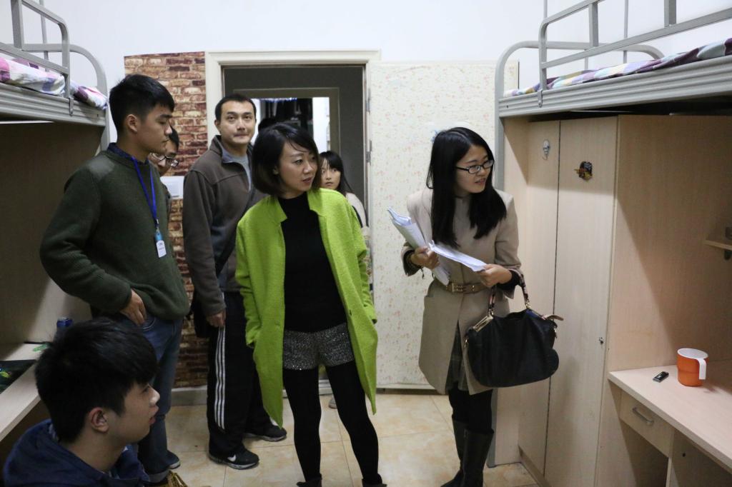 为进一步了解同学们的宿舍生活情况,提高住学生的安全意识,11月18日晚,我院党总支副书记舒畅、学生科负责人毛浩杰、全体辅导员和宿舍管理委员会全体干事一同对我院学生的寝室进行了走访检查。
