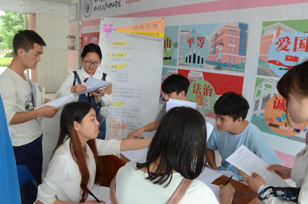 本次大赛的评委由校外专家四川电视台记者张艺、成都星娱文化传媒股份有限公司研发中心总监曹溯辰、中华网四川频道记者袁思和杨兴龙担任。评审会上,大赛负责人母华老师首先介绍了评分细则,并指出现场评审是本次评分的亮点。