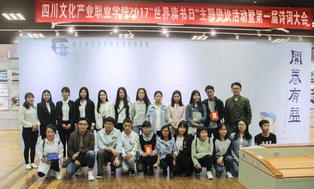 为弘扬优秀传统文化,激发学生对诗词诵读的兴趣,4月20日下午,学校在图书馆四楼举行了四川文化产业职业学院2017“世界读书日”主题倡议活动暨第一届诗词大会,我院代表队获得比赛第一名。
