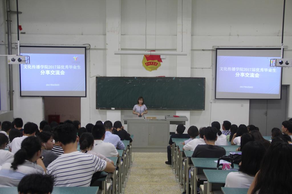 6月8日下午,文化传播学院在第二教学楼104举办2017届优秀毕业生分享交流会,我院院长郭光海、副院长张学勤、党总支书记舒畅、专业教师代表及教务科、综合科负责人出席会议。会议由我院就业干事汪未晗主持。