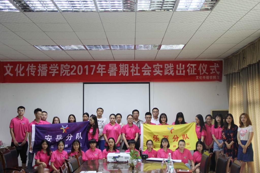 为进一步学习宣传贯彻习近平总书记关于青年成长成才的一系列重要论述,引领和帮助青年学生在实践中成长,为实现“中国梦”四川篇章注入青春力量,文化传播学院组织开展2017年暑期社会实践活动。6月30日,学院在温故楼三楼会议室举行了实践活动出征仪式。参加出席仪式的有我院党总支书记、院长郭光海,党总支副书记舒畅,分团委书记毛浩杰,辅导员范贤彬、王玥琪、孙小清以及参与本次暑期社会实践的乐至分队、安岳分队的全体志愿者。