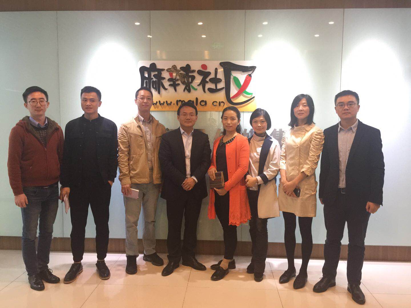 10月20日,我院副院长张学勤带领舆情监测专业负责人赖秦、专业教师马志红一行前往 “麻辣社区”进行行业调研,并就校企深度合作事项进行了洽谈。
