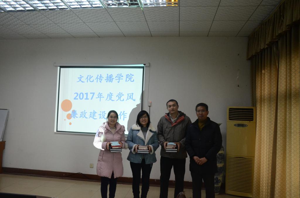 文传学院党总支纪检委员毛浩杰传达了《学校关于开展2017年度落实党风廉政建设责任制情况检查通知》要求,以及关于做好“天天学纪”手册发放使用的通知要求。毛浩杰还代表总支汇报了学院一年来的党风廉政建设情况。
