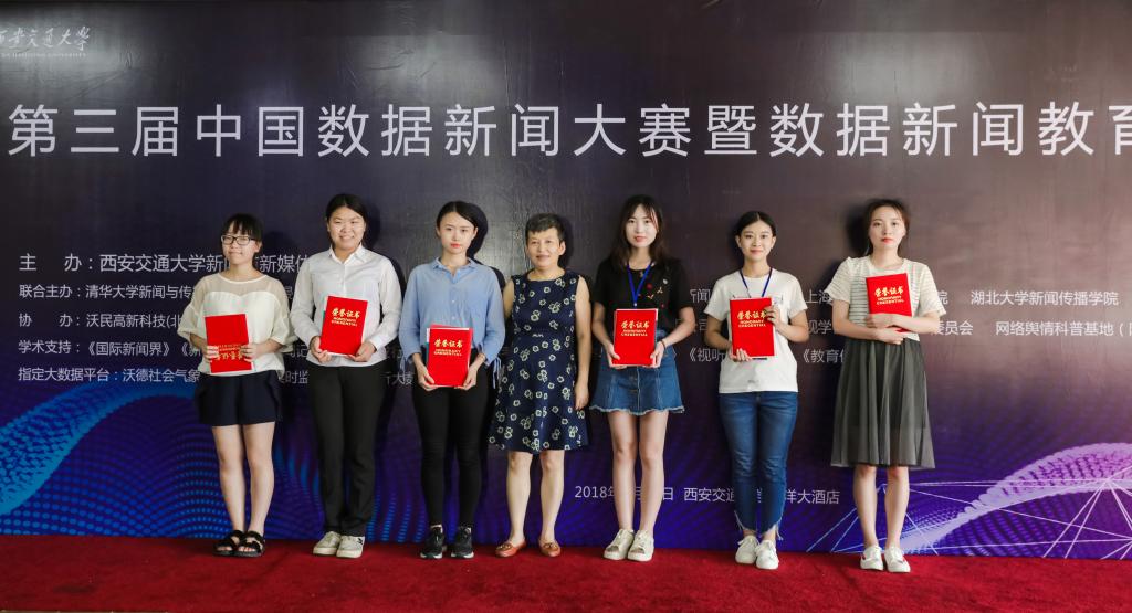 我院教师许珍带领2016级新闻采编与制作专业学生张紫艺、宋丹妮等前往西安交通大学参加决赛。决赛现场,由上海大学、北京师范大学、西安交大、中国数据新闻大赛品牌创始人和部分国内外数据新闻研究领军人物等组成的评委组对来自全国50个团队作品(分学界和业界)的限时阐述和答辩进行公开打分评审。