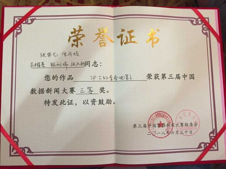 6月30日,我校文化传播学院学生作品《IP下的青春电影》荣获“第三届中国数据新闻大赛”三等奖,指导老师许珍副教授荣获优秀指导教师奖。我校成为本次比赛中唯进入决赛并获得奖项的高等职业院校。