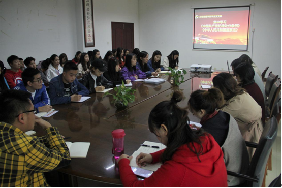 学生党支部纪检委员王玥琪和教师党支部纪检委员陈卓菲带领老师们学习了《中国共产党纪律处分条例》、《中华人民共和国监察法》的主要内容,重点解读了《条例》修订的时代背景、重要意义、新旧条文对比、使用范围、注意事项等内容。学生党支部书记毛浩杰和教师党支部书记李永红要求大家加强政治理论学习,坚定理想信念,以严格的标准要求自己,言传身教,真正肩负起教书育人的重任。