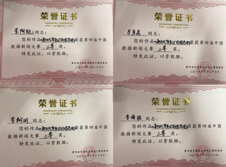 我院获奖团队队长马彦君说:“感谢学院给我们这次参加比赛的机会,能够和众多团队同台竞技,我们看到了自身作品与其他高校团队的差距,也在数据分析以及可视化的呈现上学到了很多知识,提高了我们自身的数据新闻素养。”