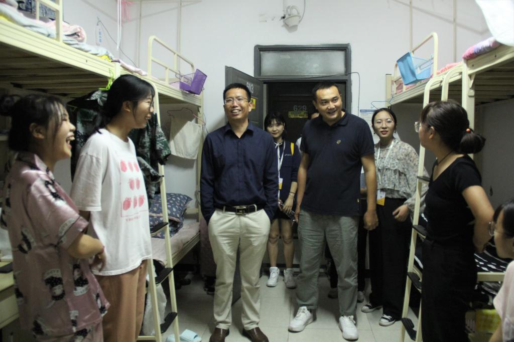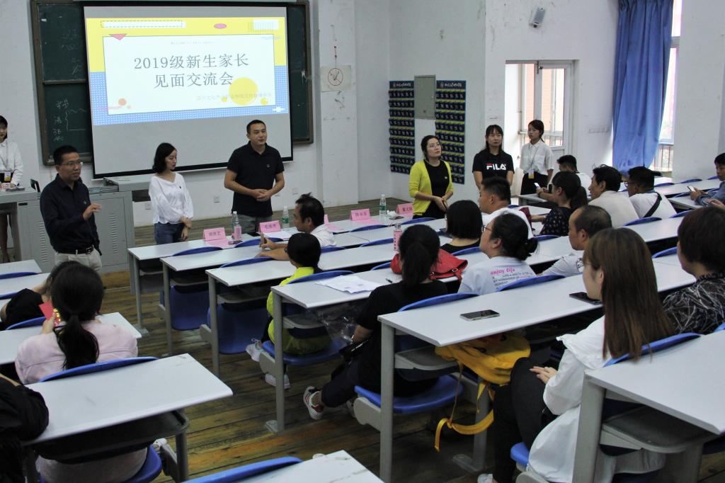 4日,我院举办了2019级新生家长见面交流会,郭光海向在座家长介绍学院基本情况、专业定位、学生管理等问题。在家长提问环节中,老师们与家长面对面进行交流与沟通,答疑解惑,开启家校合作进程。随后,在新生见面会上,毛浩杰对新生表示欢迎,胡贵芝、董文丽分别向各自负责的新生阐述了军训安排及各类要求,让同学们了解大学纪律,规范自身。新生见面会结束后,郭光海、毛浩杰及两位辅导员前往我院新生宿舍开展走访工作,郭光海详细询问各寝室入住情况,与新生们亲切攀谈,叮嘱要养成良好的生活习惯,与同学友好相处,尽快适应大学生活,并做好军训准备。