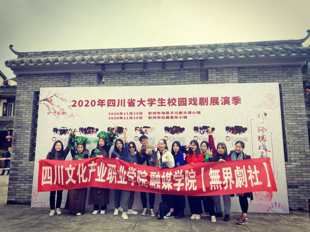 11月14日,我校融媒学院2019级影视编导专业的同学跟随指导老师王晓雯、辅导员王维亚,带着原创剧目作品《如果时光可以倒流》,奔赴彭州海窝子川剧文博小镇,参演了2020年四川省大学生校园戏剧环境戏剧展演。