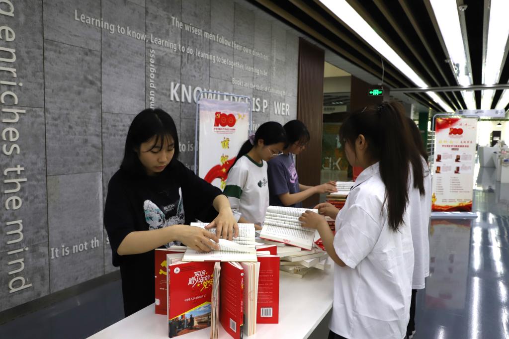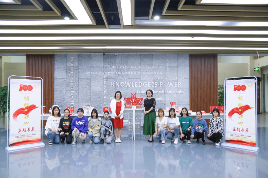 主题书展在图书馆二楼展出。书展以党史学习教育推荐书目为主展内容,将整个图书馆二楼大厅作为展台基地,展陈了300余本党史、革命史、革命人物传记等主题书籍。出版商务专业19级和20级的全体同学参与了该主题书展布展工作。他们在专业负责人张旻昉副教授的指导下,围绕书展主题认真选书,精心布置,每月以小主题的方式定期变更书展造型等,努力在图书馆内营造出良好的阅读氛围,以实现号召广大文产师生深入研读党史党建经典书籍的目的,从而引导广大师生们进一步了解中国共产党成立的艰辛历程和新中国建设以来取得的伟大成就,增强大家的民族自豪感和自信心,激发爱国爱党的热情。