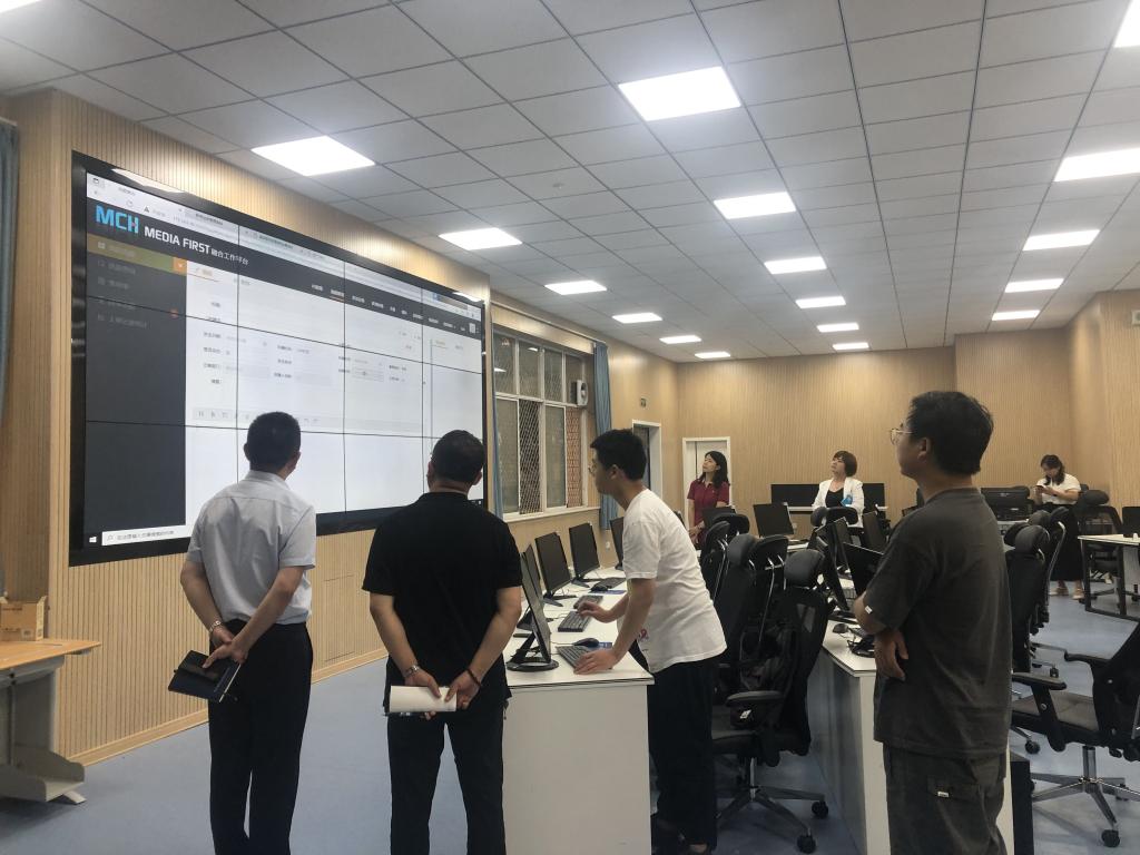 2021年6月24日下午,山东商业职业技术学院现代服务业公共技能实训基地主任尹玉杰一行7人来我院考察交流融媒体人才培养及实训室建设事宜,我院副院长唐颖、新闻专业负责人黄妍、网舆专业老师马志红、实训室老师郭晓雯陪同参观并座谈。