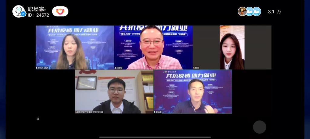 12月10日,融媒学院组织学生参加了由四川省人力资源和社会保障厅、四川省教育厅、共青团四川省委联合举办的“智汇天府”2021年四川省高校毕业生就业指导云讲座,3万余人在线观看了此次云讲座。