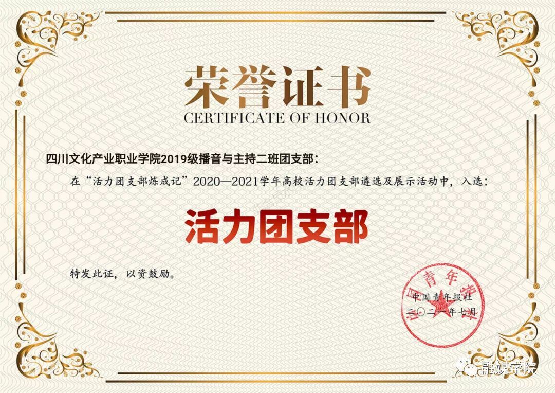 经校级申报、省级初审、展示点赞、全国终审等环节,在辅导员王维亚老师的指导下,我校融媒学院2019级播音与主持2班荣获“全国活力团支部”称号。
