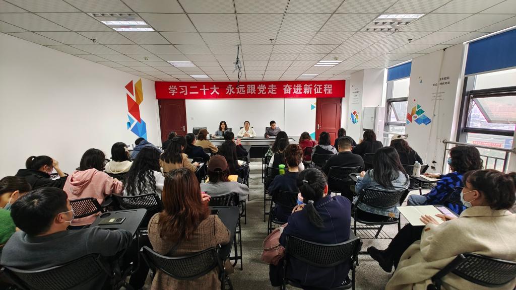 唐颖通报近期教学工作情况,并要求全体教师坚持用党的二十大精神统领教学、科研等各项工作;要将学习宣传贯彻党的二十大精神作为课堂教学、课程思政的重要内容,开展丰富多彩的教学活动,切实把二十大精神落实到教学工作当中。