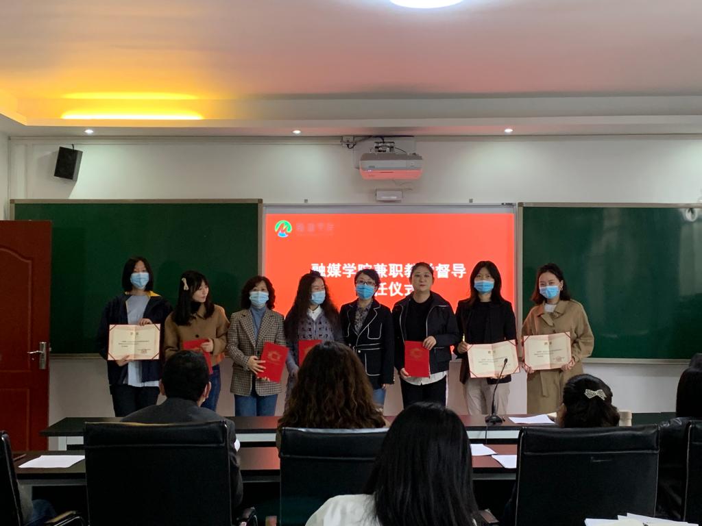 签署仪式后,举办了融媒学院兼职教学督导聘任仪式。仪式上,唐颖宣读了融媒学院兼职教学督导名单,经学院党政联席会商议决定,聘用熊江等7名教师作本届兼职教学督导。卢隽为兼职教学督导颁发聘书,她讲到,希望督导组全体成员不负重托,履职尽责,不断创新督导工作,为保障教学质量,提升我院教学水平做出贡献。