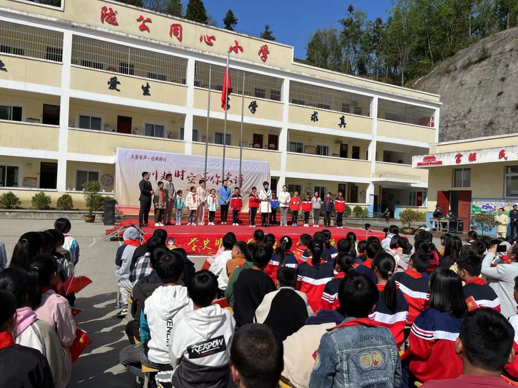 “我们穿越了千山万水,终于遇见。” 2023年4月6日下午,“大爱有声 经典同行”之“川越时空·与你读诗”乡村文化振兴公益项目在贵州毕节市大方县陇公同心小学举行。四川省电视艺术家协会的寒露、王立东、李丹、段梅、阿亮、王茜,李婷婷、闻靖等会员代表均来自省市媒体和部分高校。媒体主播与高校专业教师组团亮相,践行两年前定下的春天之约。