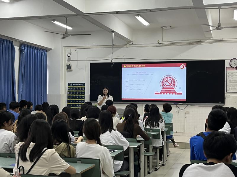 2023年9月10日晚,融媒学院学生党支部在第三教学楼311教室举行新生入党启蒙教育。本次教育活动,由融媒学院学生党支部书记谯东梅老师主讲,2023级新生参加,学生入党积极分子旁听。