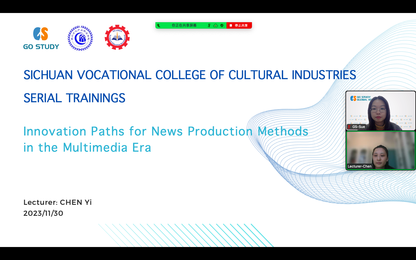 刘晓琴老师、陈怡老师分别以“用短视频技术讲好新闻故事”“融媒体时代新闻生产方式的创新路径”为主题用英语进行讲座。刘晓琴老师主要围绕技术创新赋能短视频的拍摄和制作以及杭州亚运会智能传播等案例来讲解如何用短视频讲好新闻故事。陈怡老师围绕融媒体时代如何将新技术运用于新闻生产以及相关成功案例进行了讲授。