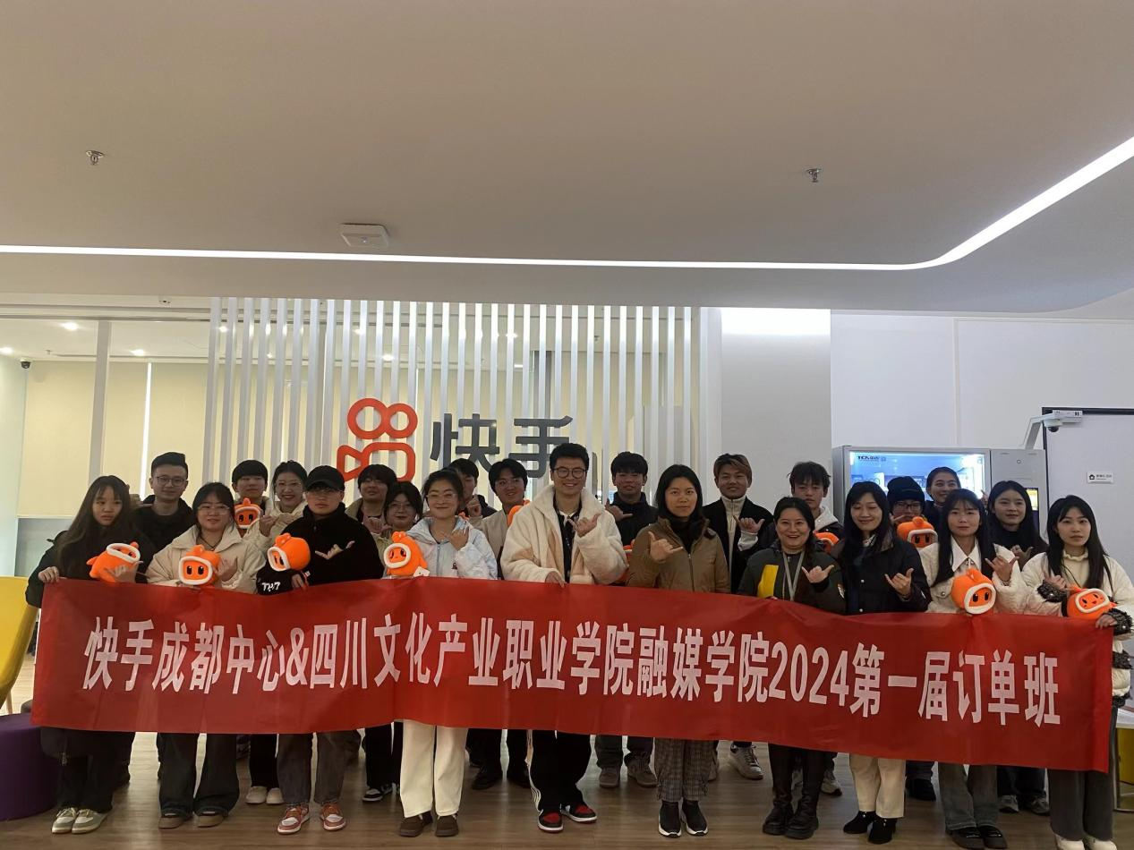 12月20日上午,融媒学院与四川快手互联网信息有限公司在快手公司成都中心举行了第一届订单班开班仪式。快手内容评级成都业务负责人黄宋旭阳、融媒学院副院长唐颖以及企业相关负责人、教师代表、订单班18名学生参加了开班仪式。活动由快手外区全国校企合作负责人刘蛟主持。
