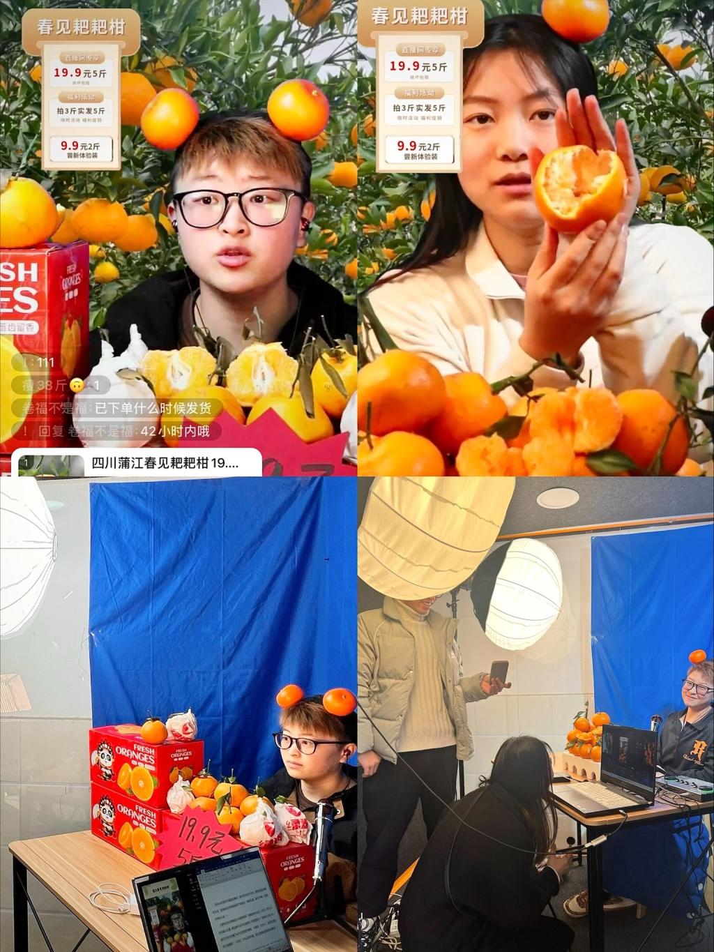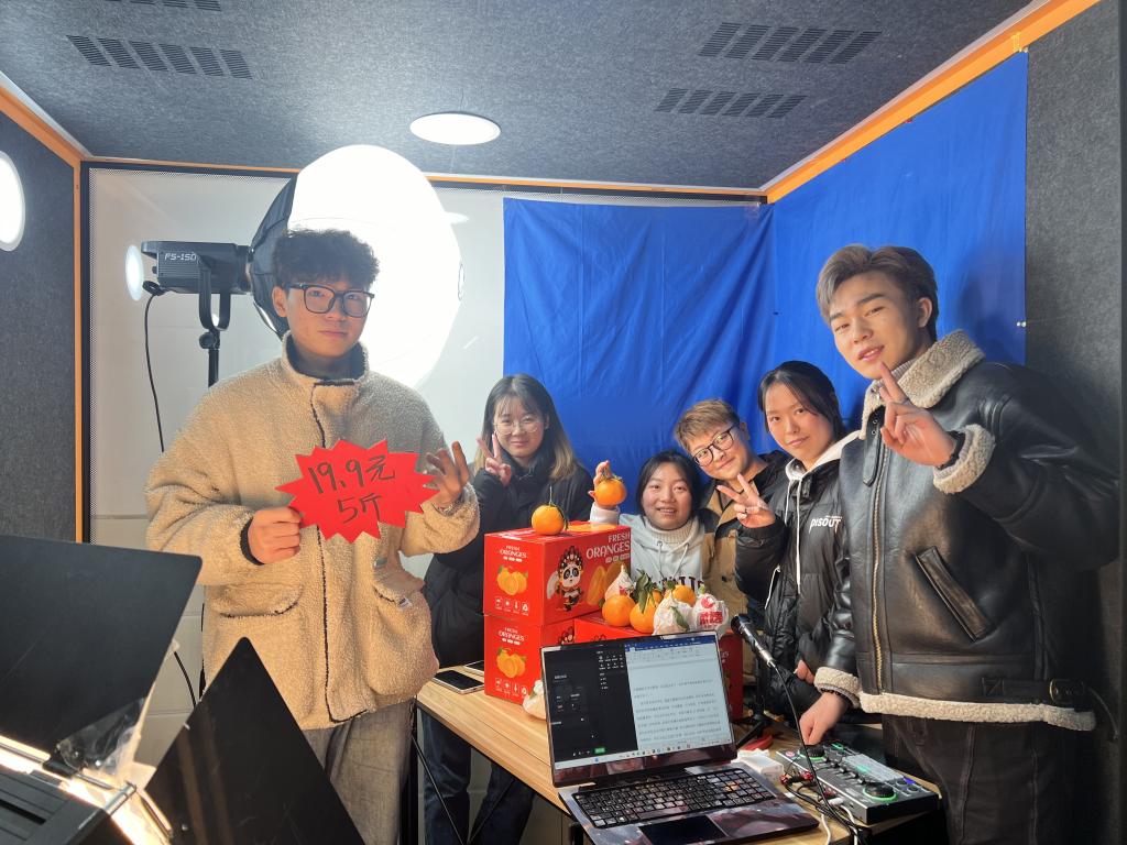 在元旦节前夕,融媒学院师生们积极发挥专业优势,利用学院青年三下乡视频号作为平台,在实训直播仓进行了耙耙柑直播带货活动,销售2000多斤,目前这些产品仍在持续热销,为当地农民创造了经济收益。