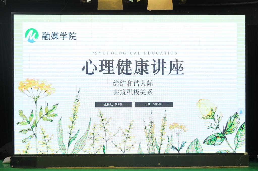 作为学校“5.25”心理健康月系列活动之一,为进一步提升学生心理素质,引导融媒学子建立健康积极的人际关系,促进校园文化和谐发展,共同营造健康的校园氛围,5月16日上午10点30分,融媒学院举办了一场以“缔结和谐人际、共筑积极关系”为主题的心理健康教育讲座。融媒学院党总支副书记邹渝、心理辅导员熊恩剑、全体心理委员、学生代表共80余名参加此次讲座。