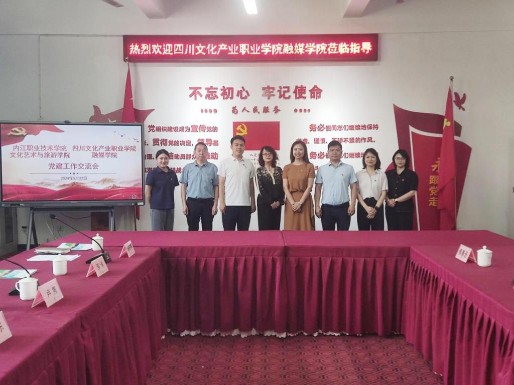 为进一步推动党建工作的创新与发展,提升学院党建工作水平,融媒学院党总支书记卢隽带领学院党总支副书记邹渝、教工党支部书记鲜力东、学生党支部书记谯东梅及党总支宣传委员余晓红一行,于2024年5月22日赴内江职业技术学院文化艺术与旅游学院进行为期一天的交流学习。