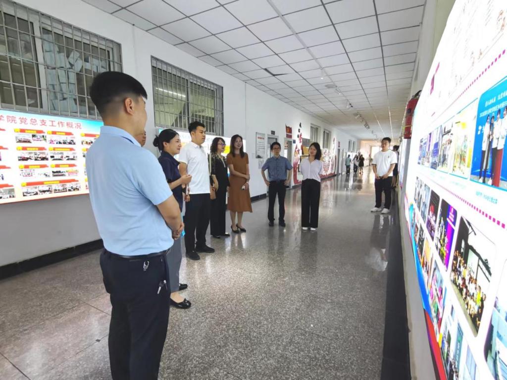 在文化艺术与旅游学院党总支书记刘内美的陪同下,卢书记一行参观了文化艺术与旅游学院党建文化走廊、荣誉墙及党员活动室等党建文化阵地,深入了解了文化艺术与旅游学院在党建标杆院系和样板党支部建设方面的先进经验和创新做法。