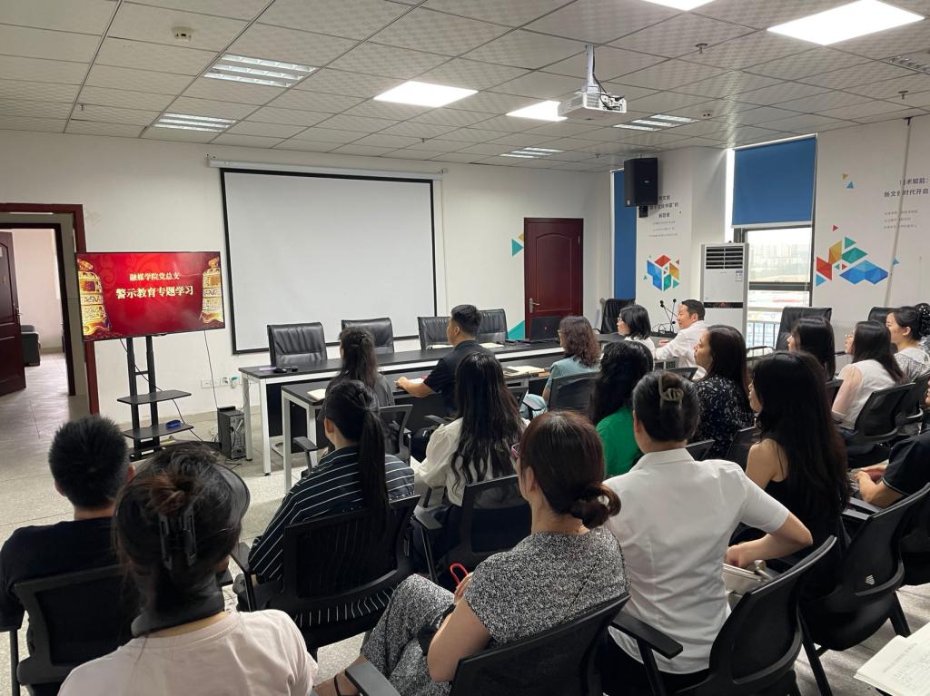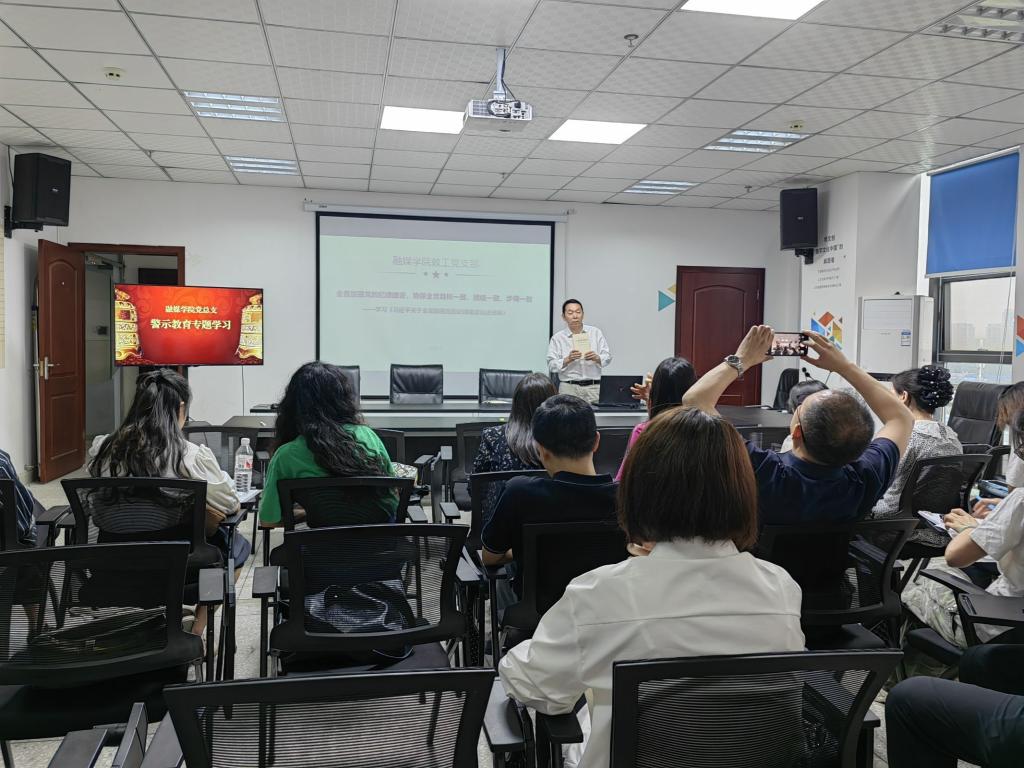 按照校党委关于开展“警示教育月”活动的部署要求,融媒学院教工党支部6月28日开展以“加强警示教育”为主题的党日活动。活动第一阶段,党总支纪检委员、副书记邹渝传达学习省委省直机关工委《关于省直机关处级党员干部近三年再次被查处情况的通报》,集中观看警示教育片《风浪噬心》;第二阶段,深入学习近期出版的《习近平关于全面加强党的纪律建设论述摘编》(以下简称《摘编》),深刻剖析警示教育读本《警醒》案例,并结合案例学习开展自查自纠,深化以案促学、以案为鉴。