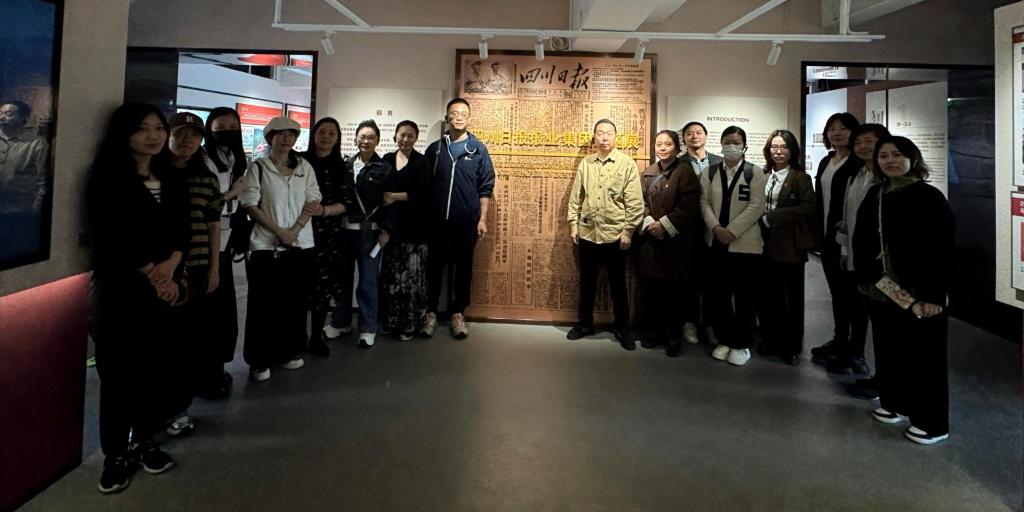 在四川报业博物馆,由讲解员带领,党员们参观了四川报业发展主题展、四川日报报业集团主题展和“烟火巴蜀”主题影像展,回顾了70余年来四川报业与时代共同共振,深入了解了四川报业的发展历程,特别是党的新闻事业在不同历史时期的重要作用和贡献。这些丰富的历史资料和展品,为全体教师贯彻落实党的二十届三中全会提出的“构建适应全媒体生产传播工作机制和评价体系,推进主流媒体系统性变革”提供了学习案例,不仅让党员们对新闻事业有了更加深刻的认识,也进一步增强了大家作为传媒教育工作者的责任感和使命感。