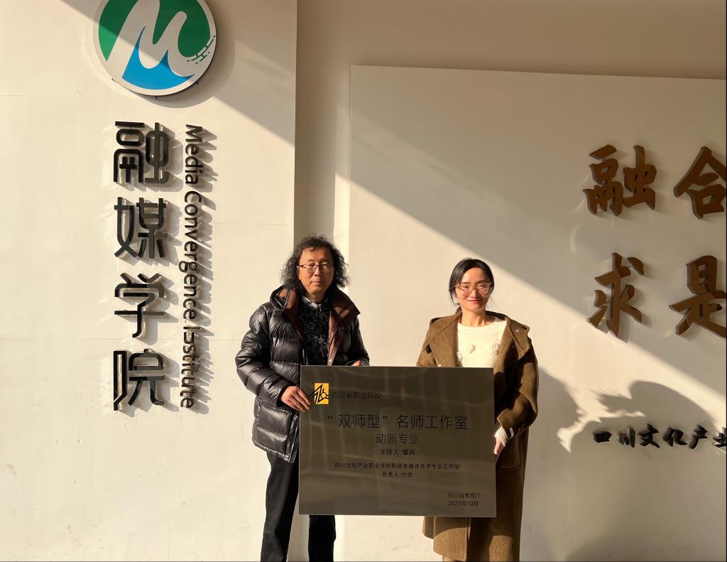 12月5日,四川省职业院校“双师型”名师工作室章兵动画工作室影视多媒体技术专业工作站在我校融媒学院305多媒体实训室正式成立。