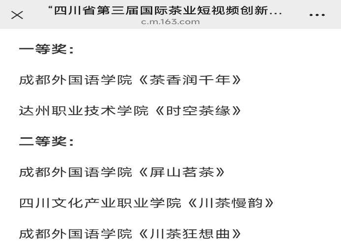 在近日圆满落幕的四川省第三届国际茶业短视频创新创意大赛中,由我院融媒体专业,网與成的“我不是绿茶队”凭借作品《川茶慢韵》斩获二等奖。本次大赛由四川省商务厅、文旅厅指导,四川国际茶业博览会组委会主办,吸引了近20所高校的104支团队参与。此次获奖彰显了我院学子在数字内容创作领域的潜力。