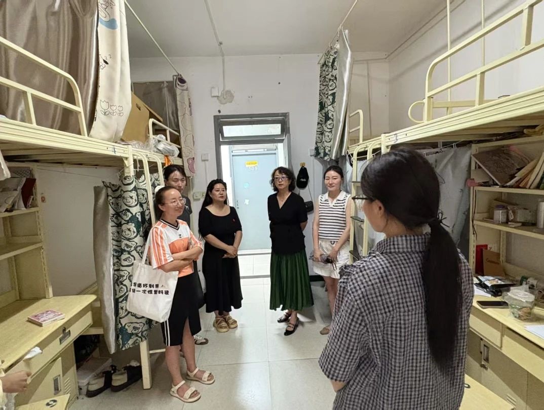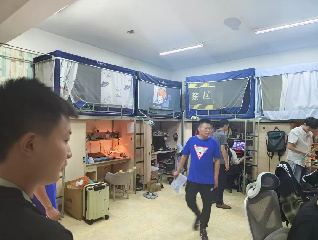 老师们逐间走访,与学生亲切交谈:询问毕业去向时,对即将入职的学生叮嘱“保持学习热情、适应职场节奏”,为求职中的学生分析就业形势、提供资源支持,向深造学子鼓励 “深耕学术、追求卓越”;关注生活细节时,从行李打包、离校手续到路途安全一一叮嘱,反复强调“到家报平安”;察觉部分学生的离别伤感,便温柔开导,“把母校关爱化作前行动力”成为最暖叮咛。