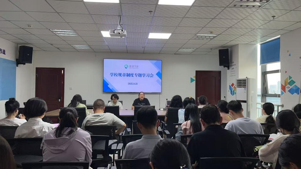 2025年9月25日下午,融媒学院组织召开规章制度专题学习会,全体教职工参加。会议采取集中领学的方式开展,旨在进一步提升学院制度执行力度和规范化水平。
