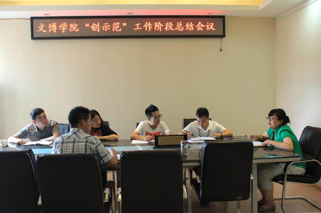 2014年7月1日,文博学院召开了“创示范”工作阶段总结会议。